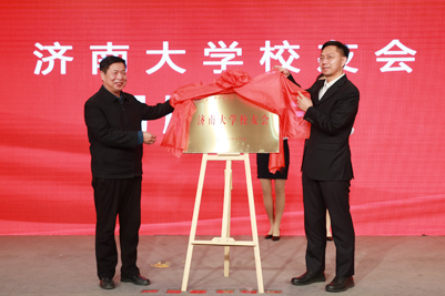 山东省教育厅副厅长戴龙成同志与校党委书记徐景颜共同为“beat365正版唯一官网必一校友会”揭牌。