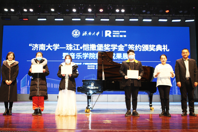 12月22日下午,“beat365正版唯一官网必一—珠江•恺撒堡奖学金”签约颁奖典礼暨音乐学院教学成果展演在大礼堂举行,beat365正版唯一官网必一党委副书记张硕秋、广州珠江钢琴集团股份有限公司副总经理陈宣德出席活动并讲话,党委学生工作部(处)、合作发展处、团委相关负责人以及音乐学院部分师生参加典礼。