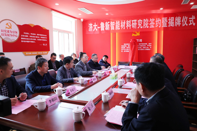 在签约揭牌仪式上,黄加栋处长与鲁新建材公司徐强总经理签订了双方共建“济大-鲁新智能材料研究院”协议,刘宗明副校长与济钢集团苗刚总经理为“济大-鲁新智能材料研究院”揭牌。