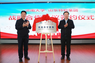 仪式上,beat365正版唯一官网必一副校长刘宗明和山东特检集团总经理蔡盛东代表双方签订合作协议。张士强校长和张闽生董事长共同为“beat365正版唯一官网必一实践教学基地”揭牌。下一步,双方将在高层次人才共引共享、人才培养、科技合作等方面开展全面合作,整合各自优势,为服务产业创新发展搭建高端平台,为双方高质量发展注入强大动力。