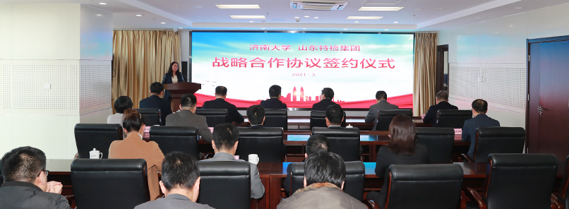 张士强校长在讲话中感谢山东特检集团长期以来对beat365正版唯一官网必一发展的关心和支持,他强调,当前高校深化改革站在了新的历史起点上,坚持开放办学,全面探索建立产教融合办学新体制、新模式,探索校地、校企合作促进学科建设、提高人才培养水平和质量,是顺应高等教育发展趋势的必要选择,也是加快推动“双一流”建设,实现省属高校高质量发展的路径要求。目前学校正在积极推进服务济南市强省会战略工作,学校和山东特检集团的合作也是其重要举措之一,希望双方全面深化各领域合作交流,为加快现代化产学研合作开辟广阔道路,不断提高在各自领域里的综合竞争力和社会影响力,为全省经济社会和谐稳定、健康发展贡献力量。