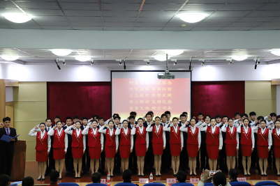典礼最后,培养班的师生进行了航空礼仪、航空形体、航空手语、航空舱内教学等汇报表演,并进行了集体宣誓。