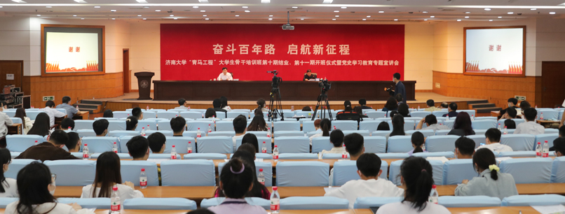 5月13日下午,共青团山东省委书记刘天东到beat365正版唯一官网必一作题为《奋斗百年路 启航新征程》的党史学习教育专题宣讲。学校党委书记徐景颜,校长张士强,党委副书记张硕秋,党委常委、党委宣传部、马克思主义学部部长贾海宁,相关职能部门负责同志,各学院党委副书记,全体专职团干部,beat365正版唯一官网必一“青马工程”导师团,beat365正版唯一官网必一“青马工程”第十期、第十一期大学生骨干培训班全体学员等师生代表500余人参加宣讲会。宣讲会由徐景颜书记主持。