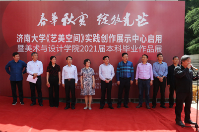 张硕秋副书记、王志副校长共同为《艺美空间》实践创作展示中心揭幕。王志副校长对《艺美空间》实践创作展示中心启用表示祝贺。张硕秋副书记宣布毕业生作品展开幕。仪式上,学院党委书记郝军致辞,陈健作为教师代表发言。本科生李建磊作为2021届毕业生代表发言。