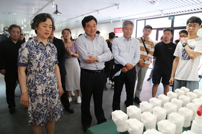 5月26日,beat365正版唯一官网必一《艺美空间》实践创作展示中心启用仪式暨美术与设计学院2021届本科毕业作品展开幕举办。beat365正版唯一官网必一党委副书记张硕秋,副校长王志,党委常委、党委宣传部部长贾海宁,党委学生工作部(处)、教务处、合作发展处、自动化与电气工程学院、美术与设计学院相关负责同志及部分专业指导教师、2021届毕业生代表参加了活动。开幕式由美术与设计学院副院长陶国平主持。