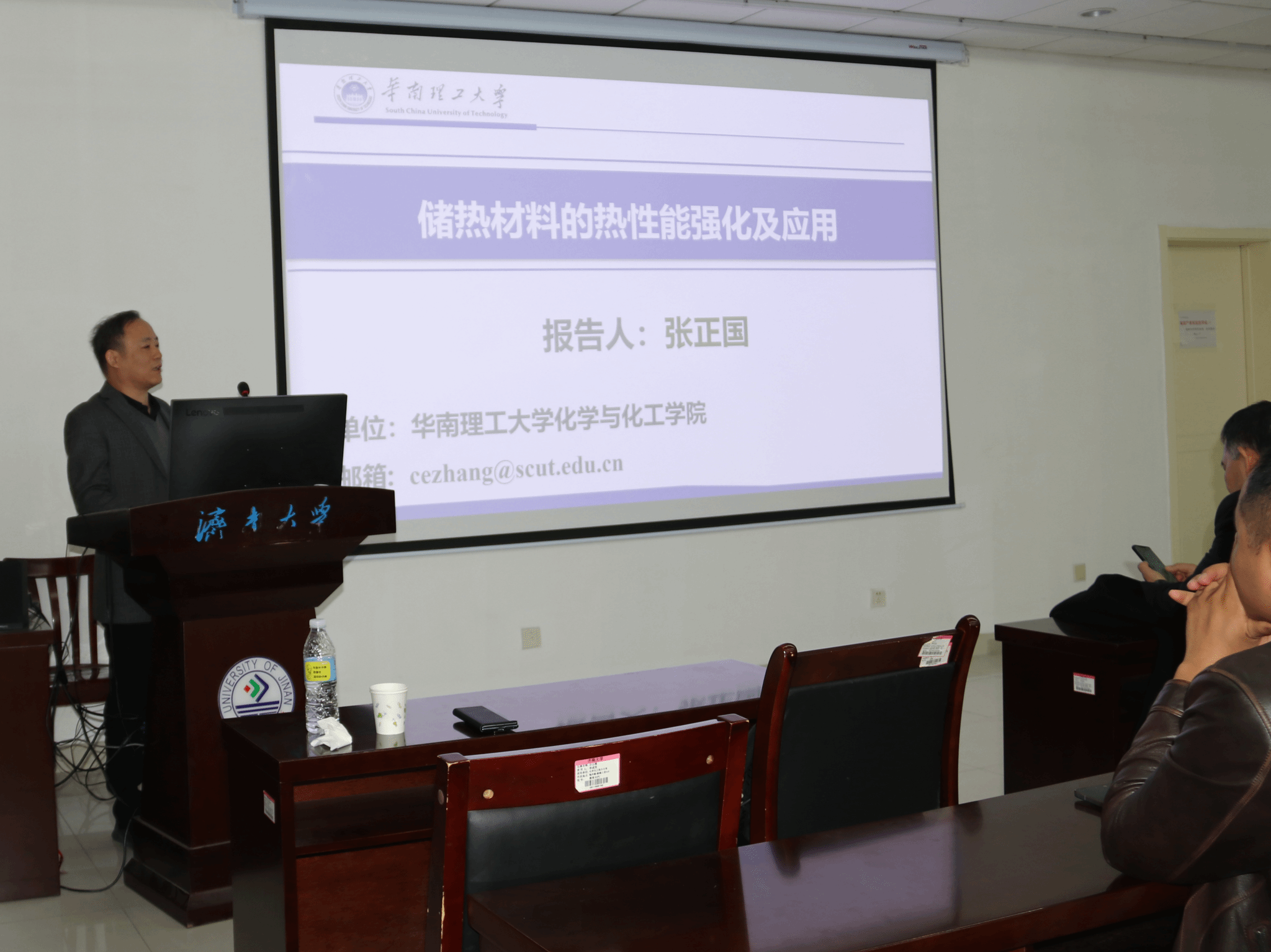 张正国教授作了题为“储热材料的热性能强化及应用”的学术报告。他指出,储热技术,特别是相变储热技术,是实现碳达峰、碳中和目标的关键技术之一,其核心在于高性能相变材料及高效储热器的开发。张教授系统介绍了其团队在传热强化与相变储热技术领域的最新研究成果。在材料制备层面,张教授团队致力于通过多孔基体封装、微胶囊封装及与聚合物复合等策略,显著提升相变材料的热物性(如导热系数)并解决其相变过程中的液体流动和泄漏问题。张教授团队利用膨胀石墨等多孔碳材料作为载体,成功制备出系列具有高热导率和优异稳定性的复合相变材料,其导热系数最高可比基础有机物提升二百倍以上,接近60 W/m·K。特别地,张教授团队还开发了一种在120℃附近具有快速、高热量吸收特性的材料,用于抑制电池热失控,展现出显著的安全优势。