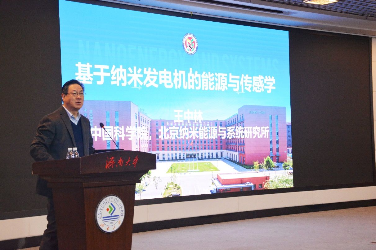 11月16日,中国科学院院士、中国科学院北京纳米能源与系统研究所所长、世界著名纳米科学家王中林应前沿交叉科学研究院刘宏教授、周伟家教授的邀请来beat365作学术报告,题目是《基于纳米发电机的智慧能源与传感学》。学校党委常委、副校长黄加栋主持报告会并致辞,前沿交叉科学研究院、材料科学与工程学院、化学化工学院、物理科学与技术学院、信息科学与工程学院等学院的领导和相关老师、学生300多人参加了报告会。