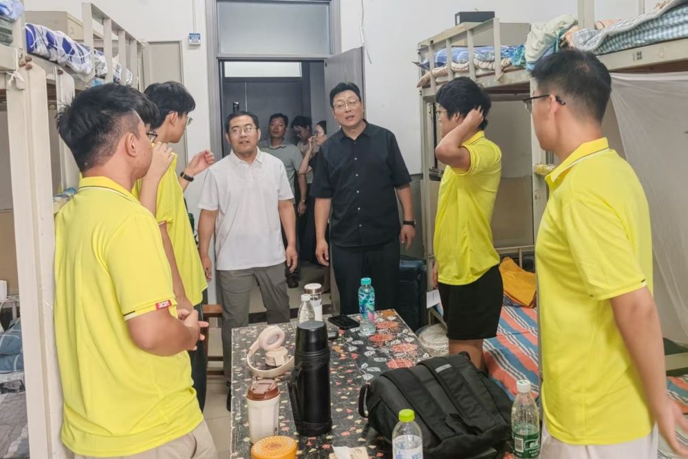 走访期间,学院领导逐一走进每间新生宿舍,以“拉家常”的方式与同学们展开交流。“老家是哪里的?”“对宿舍环境还习惯吗?”一句句贴心的问候迅速拉近了师生距离。领导们细致询问新生生源地、初入校园的体验与感受,叮嘱大家要特别注意宿舍用电安全、保持环境整洁,鼓励同学们主动熟悉校园食堂、图书馆、运动场等公共设施,积极参与班级和社团活动,尽快融入大学学习生活。