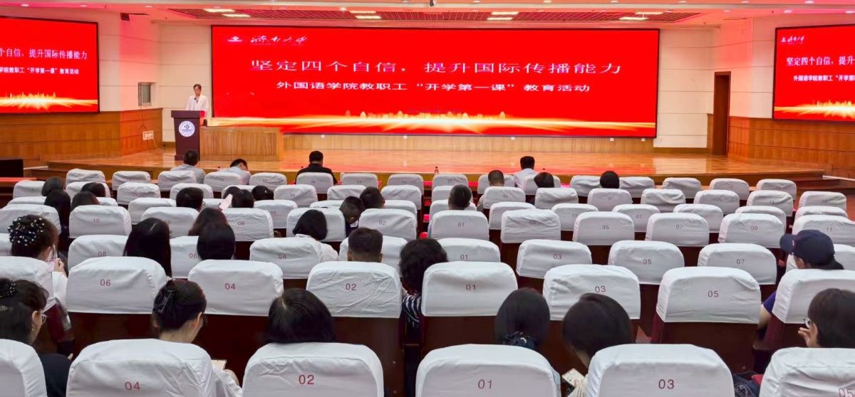 为进一步深化思想认识,凝聚奋进力量,9月6日,外国语学院在第二学术报告厅举行2025年秋季学期“开学第一课”暨全体教职工大会。活动邀请了中央党校(国家行政学院)国际和港澳培训中心副主任、副研究员董明发作专题讲座。