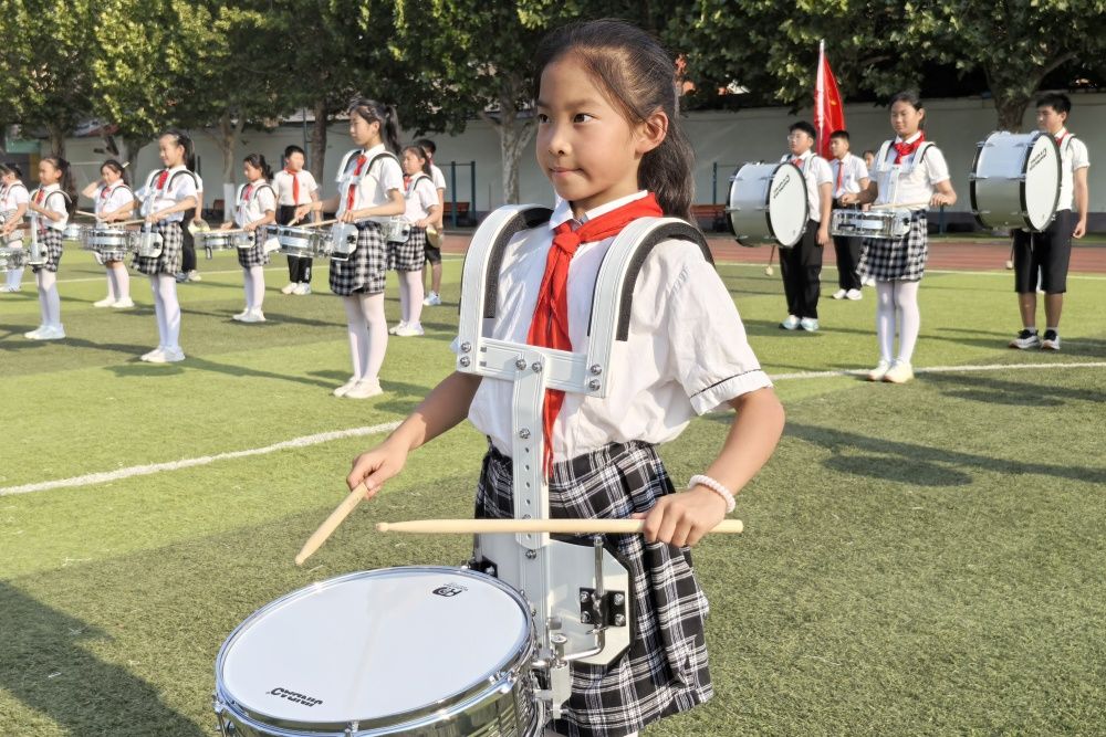 展示现场,beat365正版唯一官网必一附属小学鼓号队的队员们身着统一的礼服,意气风发。他们以嘹亮清澈的号声、整齐铿锵的鼓点、默契流畅的队形变换,完美演绎了新时代少先队员的蓬勃朝气与无限活力。整个表演过程节奏分明、编排精巧,既有力量感又不失艺术性,构成了一幅动感与美感交织的精彩画卷,赢得了现场评委和观众们的阵阵掌声。