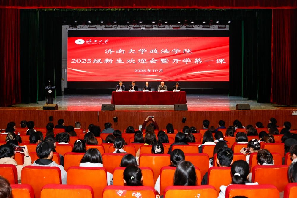 10月25日,政法学院在学校大礼堂隆重举行2025级新生欢迎会暨开学第一课。学院领导班子成员,校友代表,学院各系部主任、党支部书记、科室负责人、辅导员、新生班主任以及2025级全体新生参加活动。