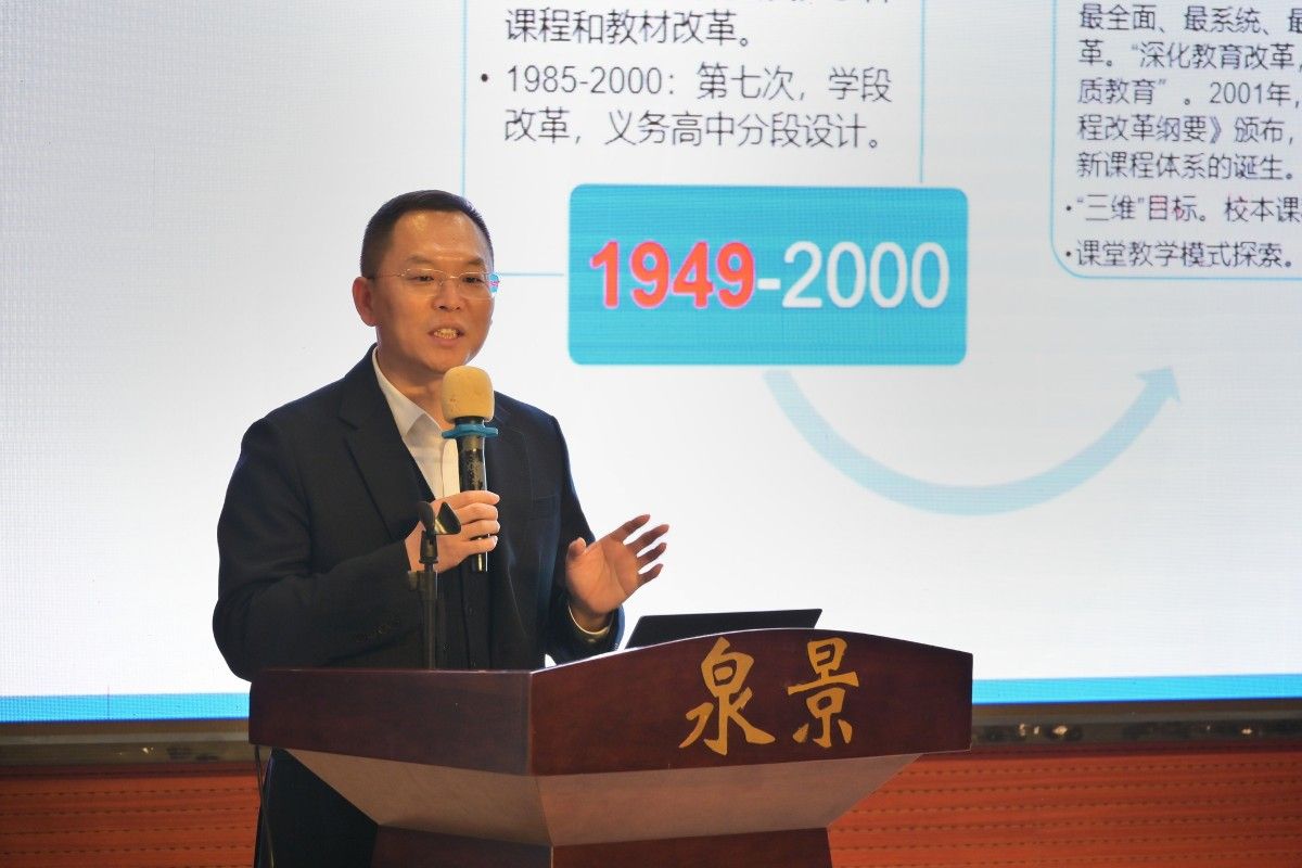 为进一步落实山东省教育科学研究院、beat365正版唯一官网必一、济南市市中区人民政府合作共建“区域教育协同创新发展中心”相关精神,深入探索“G-U-I-S”协同发展机制,11月19日,beat365正版唯一官网必一与济南泉景中学成立“协同式教研共同体”并开展教研活动。山东省教育科学研究院党委委员、副院长张斌,济南市教育教学研究院党委书记、院长刘庆华,市中区教体局教育教学研究中心主任明亮、副主任于飞、教科室主任罗凯,beat365正版唯一官网必一党委学生工作部部长胡春毅、党委教师工作部部长张婷、教务处副处长张海鵾,泉景中学党委书记冯晓青、校长刘祥、小学部校长魏靖出席活动。各学院党委副书记、副院长、负责山东省师范类学生从业技能大赛的指导教师以及泉景中、小学教师150余人参加活动,活动由beat365正版唯一官网必一党委学生工作部副部长张晶、泉景中学副校长朱梅竹分别主持。