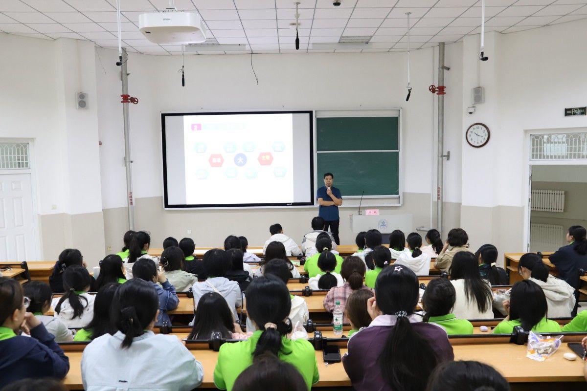 针对新生面临的学业适应与规划难题,学院推出了“学业导航月”系列活动。通过生涯主题团辅等活动,帮助新生深入了解专业前沿与职业路径。生涯指导中心主任段继燕立足新生实际,作了生涯专题指导。她详细介绍了大学四年各阶段的特点与任务,引导新生从自我认知和外部探索出发,尽早确立发展目标,并科学制定学业与职业规划,为新生提供了清晰实用的行动指南,有效激发了其内在学习动力。