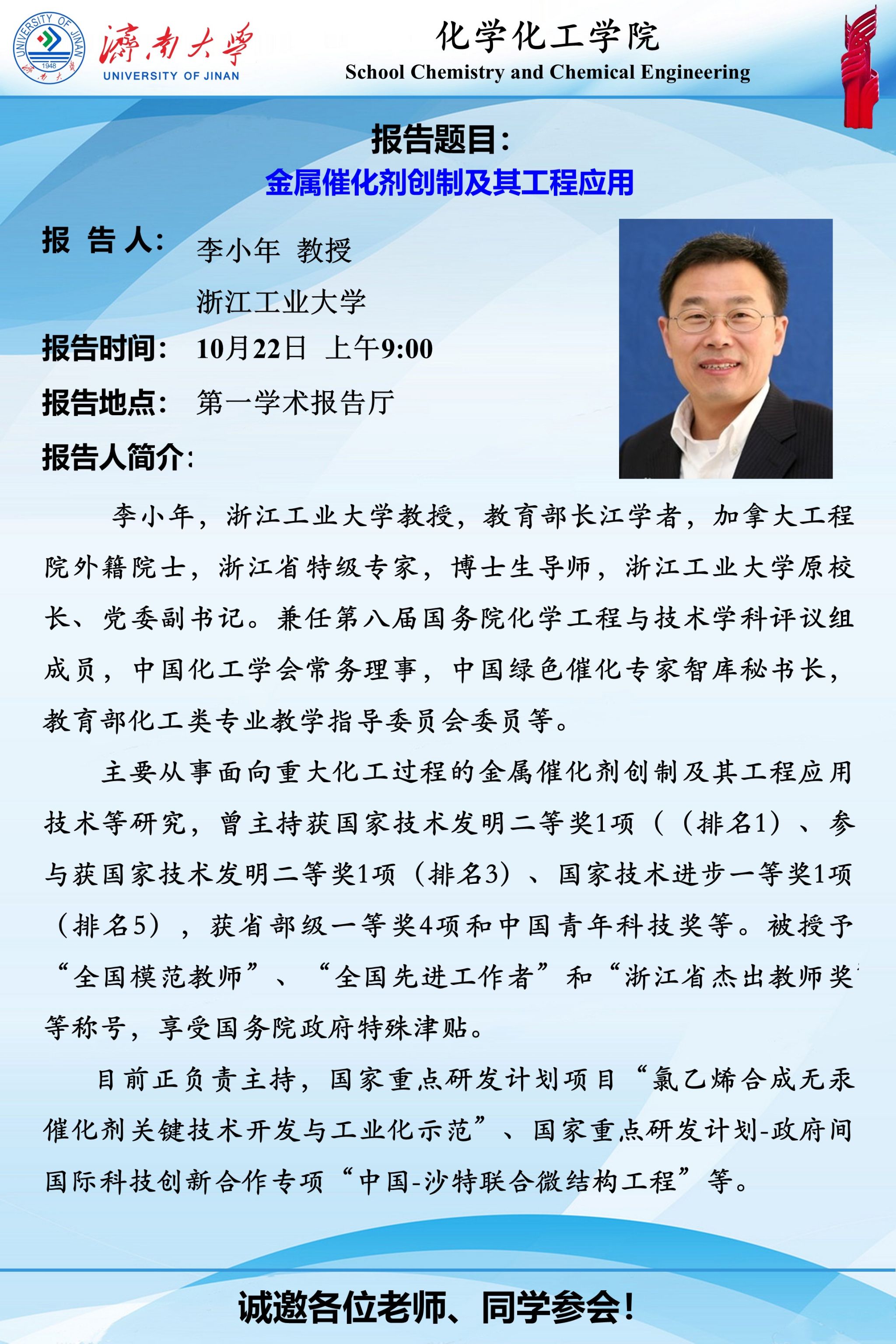 化学化工学院学术报告:金属催化剂创制及其工程应用