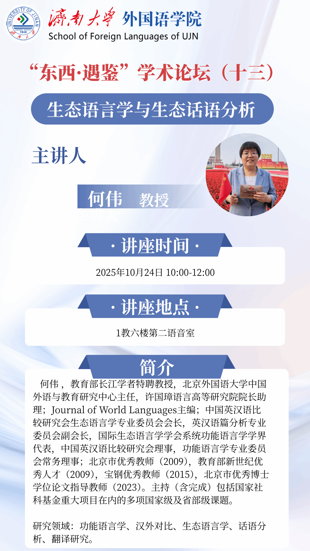 外国语学院“东西·遇鉴”学术论坛:我的学术人生——学术生涯四十五年